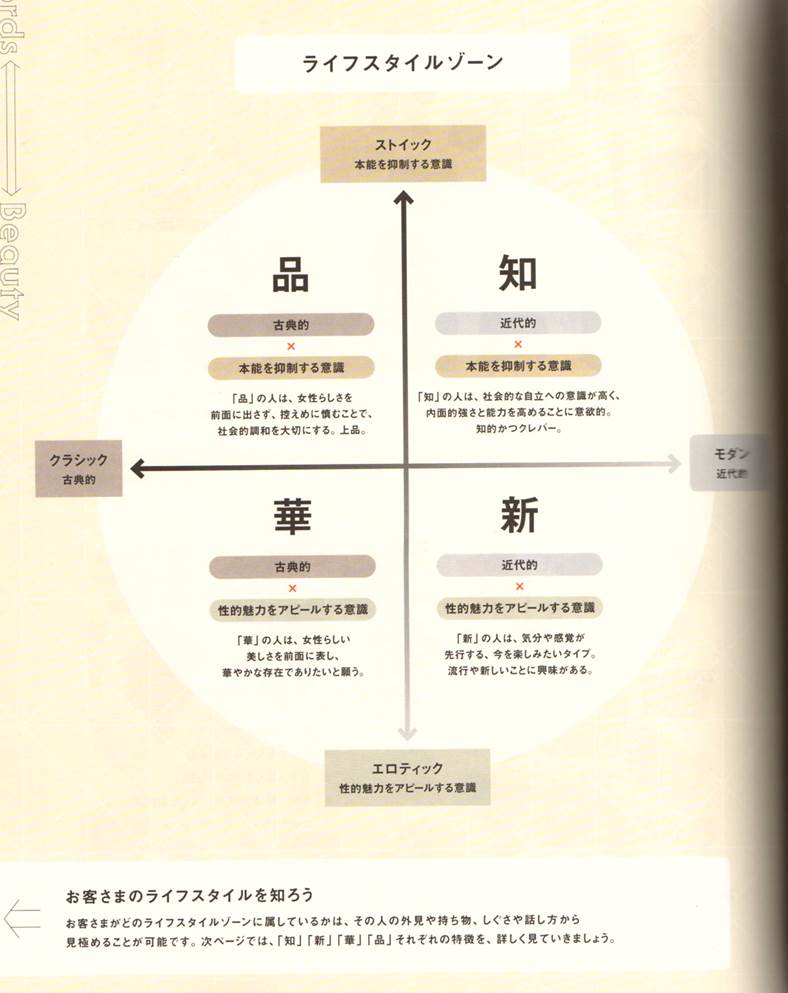 控制生活方式的區域本能的意識,分為知、品、新、華四種。